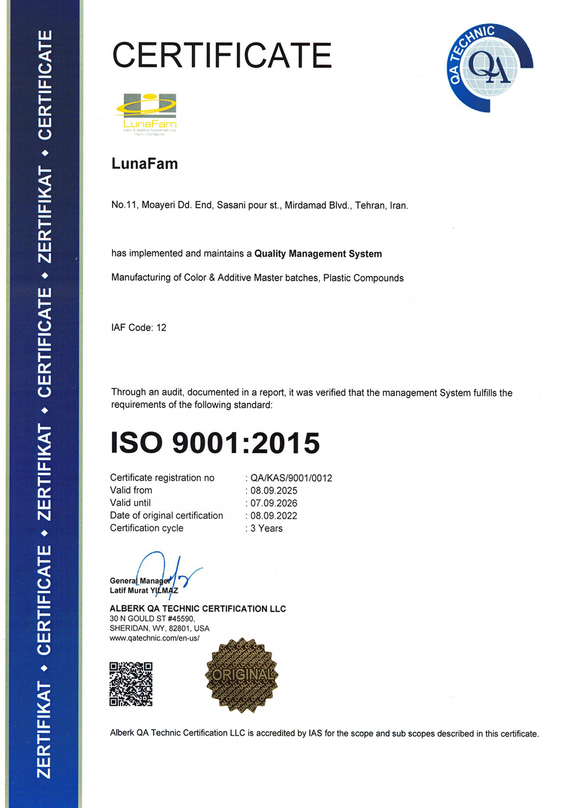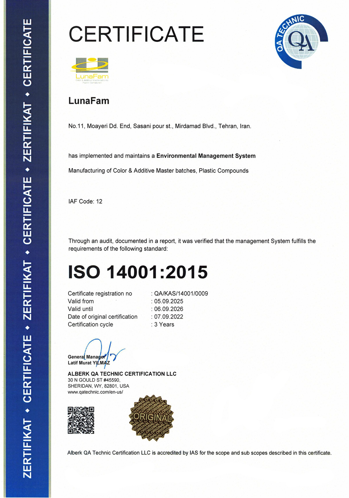 At LunaFam, we are dedicated to maintaining the highest standards in quality, environmental responsibility, and workplace safety. Our certifications in ISO 9001, ISO 14001, and HSE-MS reflect our commitment to excellence and continuous improvement.